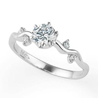 さり気なくV字を描くプラチナリングに、中央のダイヤモンドから湧き出るようなメレダイヤが特徴的なデザイン。豊かに流れゆく澄んだ泉の風景からインスピレーションを得たというこの作品は、2人の繁栄と柔らかに光さす未来を連想させます。いつまでもこの婚約指輪に表現される水の如く、純粋な気持ちを忘れないようにしたい方に。
